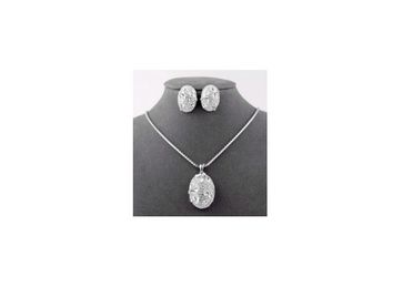 Совершенно нереальный комплект! Блестит и переливается каждая грань! Он подчеркнет изящество и утонченность вашего образа. Комплект бижутерии серебристого металла. На оригинальной витой цепочке крупный овальный кулон, украшенный сверкающими цветами в окружении мелкой россыпи кристаллов. Серьги полностью повторяют дизайн кулона, только меньшего размера. Комплект бижутерии состоит из кулона на цепи 50 см , серег застежка-гвоздик . Кулон и серьги овальной формы, серьги 2.5 см в длину и 2 см в None Можно купить без предварительного заказа. Возможен самовывоз. Есть доставка.