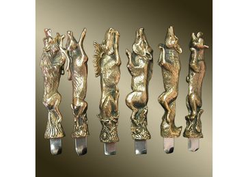 Набор шампуров "На охоте" в кожаном колчане с ручной росписью, бронза, художественное литье. Возможна поставка в кожаном колчане (+ 900р) None