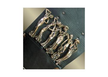 Набор для шашлыка"Грации Престиж" 1. Черный колчан для шампуров из натуральной кожи с росписью ручной работы 1шт. 2. Шампура с рукоятью из бронзы, художественное литье 6 шт. None