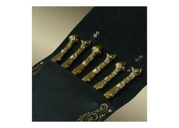 Набор для шашылка "На отдыхе Престиж" 1. Колчан для шампуров из натуральной черной кожи с росписью ручной работы 1шт. 2. Шампура - бронза, художественное литье (кабаны и бараны) - 6шт. None