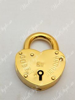 Свадебный замок медный с гравировкой, цвет - золото K011246 Большой свадебный замок предназначен для церемонии скрепления брачного союза на мосту. Он выпущен в виде золотого, блестящего сердца - вечного символа любви молодых. Свадебный замок медный с гравировкой "Совет да любовь". С замком в комплект входят два ключика. Согласно новой традиции жених и невеста вместе закрывают этот замок, а ключи выкидывают далеко в воду, навсегда скрепляя свой свадебный союз. Материал: медь None