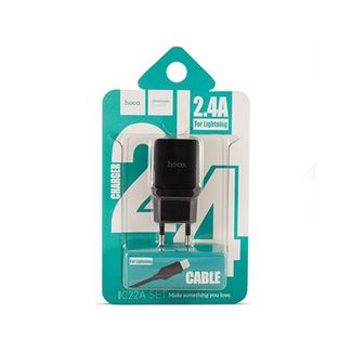 - Hoco Зарядное устройство Hoco C22A 2.4 A + Lightning кабель black по выгодной цене 400 р. руб.;