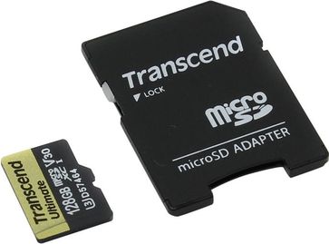 - Карта памяти Transcend TS128GUSDU3M microSDXC 128Gb UHS-I U3 + microSD--SD Adapter по выгодной цене 8 516 р. руб.;