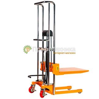 Грузоподъемность 400 кг, высота подъема 1500 мм, длина вил 675 мм, ширина несущей поверхности вил 550 мм, вилы/площадка, материал колес нейлон, вес 77 кг. None