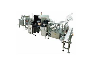 Шприцы подаются в блок визуального контроля шприцов. Перед контролем на наличие посторонних частиц, шприцы раскручиваются, вследствие чего образуется вихрь, обеспечивающий всплытие включений. Затем шприцы проходят через световой экран, благодаря которому посторонние частицы высвечиваются. Оператор отмечает бракованные шприцы, после чего осуществляет их отбраковку в автоматическом режиме.