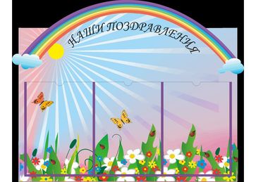 - Стенд с карманами "Наши поздравления" по выгодной цене 1 750 р. руб.;