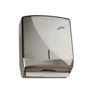 Диспенсер для бумажных полотенец Jofel. Изготовлен из нержавеющей стали, запирается на ключ, имеет смотровое окно-прорезь для удобства контроля расходного материала. Вместимость 600 листов. None