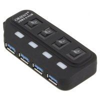 USB 3.0 HUB 4 Ports, c БП-зарядником 2xUSB (5В, 2.1А), выключатели на каждый порт, черный Оплата: нал, безнал. Доставка: 300.0USD