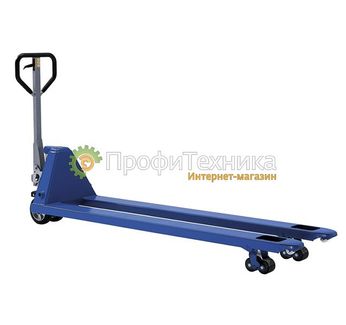С удлиненными вилами. Грузоподъемность 2500 кг, длина вил 1500 мм, общая длина 1530 мм, высота подъема 195 мм, ширина несущей поверхности вил 550 мм, расстояние между вилами 250 мм, вес 110 кг. МИНИМАЛЬНЫЙ ЗАКАЗ 2 ШТ. None