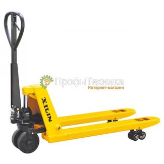 Грузоподъемность 5000 кг, длина вил 1150 мм, общая длина 1544 мм, высота подъема 205 мм, ширина несущей поверхности вил 550 мм, материал колес резина, вес 110 кг. None