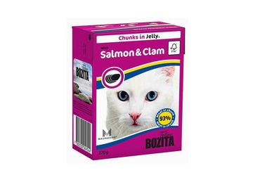 - BOZITA Jelly консервы для кошек Кусочки в желе с Лососем и Мидиями по выгодной цене 115 р. руб.;