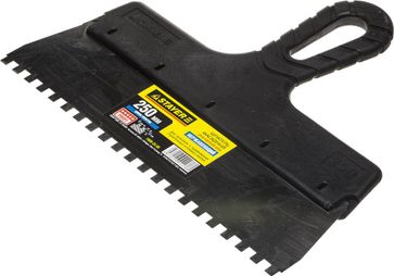 Шпатель STAYER "PROFESSIONAL" нержавеющий зубчатый с пластмассовой ручкой, 250мм, зуб 6х6мм