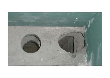 - Безопасность работ для человека и окружающей среды. На примере хорошо видны различия между отверстием сделанным с использованием обычного перфоратора и отвестием сделанным алмазной сверлильной установкой.