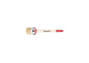 Ворс кисти из натуральной светлой щетины, расщепленной на концах. Кисть конической формы имеет разную длину щетины, что обеспечивает более точное выполнение работ. Щетина кисти надежно закреплена металлическим бандажом с антикоррозийным покрытием. Трехкомпонентная эргономичная обрезиненная ручка не скользит в руке и имеет отверстие для подвешивания. Кисть предназначена для работ с масляными красками и лаками, устойчива к агрессивным составам. Минимальная сумма заказа без доставки 500 руб.