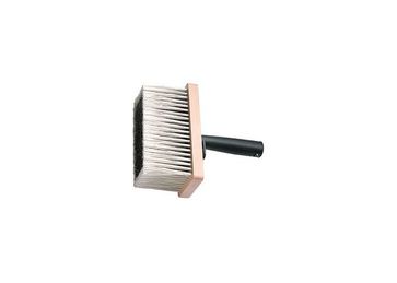 Ворс кисти – искусственная щетина, расщепленная на концах. Толщина кисти от 52 до 70 мм. Пластмассовая ручка с полостью для крепления телескопического стержня позволяет работать в труднодоступных местах, а также имеет специальное приспособление для крепления на емкость. Предназначена для работ с воднодисперсионными, масляными красками и лаками. Кисть применяется для размывания ЛКМ, нанесения клеящих составов, грунтовки и побелки больших поверхностей. Минимальная сумма заказа без доставки 500 руб.