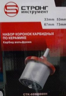 - Набор коронок карбидных по керамике (33, 53, 67, 73 мм) по выгодной цене 720 р. руб.;