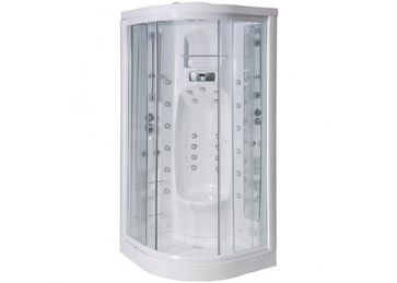 Размеры: 950x950x2270 мм Профиль кабины: белый Стекло: прозрачное, тонированное Комплектация: - спинной массаж: 8 форсунок - шейный массаж: 5 форсунок - боковой массаж 12 форсунок - расслабляющий дождевой душ - встроенное сидение - низкий поддон - купол - контрольная панель управления с LCD-дисплеем - регулирование температуры пара - непрямое мягкое освещение (верхняя лампа) - хромированный смеситель для холодной и горячей воды - хромированный душевой шланг со стойкой и лейкой - вентиляция - зеркало - полочка для косметических средств - задние стенки: акриловые, белые - подвод электричества 220-230 В при заказе от 30 тысяч рублей - 100% предоплата. Есть доставка.
