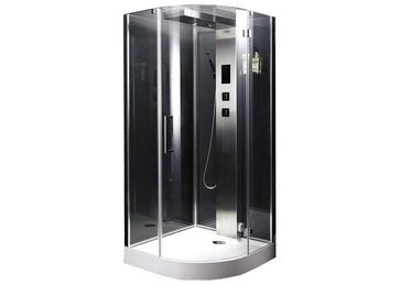 закрытая кабина форма четверти круга поддон из акрила стенки кабинки из стекла распашные двери гидромассаж имитация турецкой бани Размеры: 90х90х215 см None