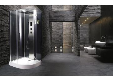 закрытая кабина форма четверти круга поддон из акрила стенки кабинки из стекла распашные двери гидромассаж имитация турецкой бани Размеры: 90х90х215 см None
