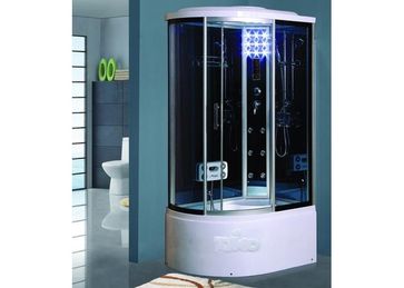 закрытая кабина нестандартной формы раздвижные двери гидромассаж встроенное радио электронное управление дисплей Размеры: 110x85x220 см None
