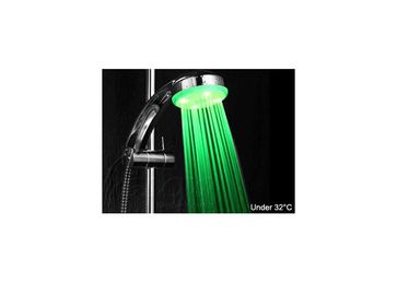 Что интересного можно добавить,например,в ванную комнату?Можно подсветить потолок светодиодной лентой,можно поставить светодиодный светильник,а можно-светодиодный душ.Все очень просто.Отвинчиваете старую душевую ручку и устанавливаете новую,светодиодную.Ни каких проводов,нет батареек.Под давлением воды,микротурбина вырабатывает необходимую энергию и вода начинает подсвечиваться различными цветами,в зависимости от температуры.