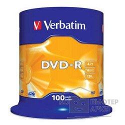 Verbatim Диски DVD-R 4.7Gb 16-х, 100 шт, Cake Box 43549
