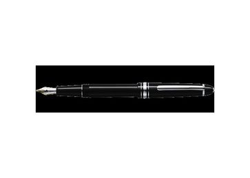 Артикул - 106522 Перьевая ручка Meisterstuck Classique Platinum Line, с поршневым конвертером; перо из 14-каратного золота, украшенное вставкой с родиевым напылением, корпус и колпачок из драгоценной черной смолы с инкрустированной эмблемой Montblanc, клип и кольца с платиновым напылением.
