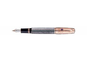 Артикул - 103795 Перьевая ручка Boheme Pirouette Lilas, с картриджем, выдвижное перо из 18-каратного розового золота, корпус из полупрозрачного лака цвета антрацита на фоне гильошированного узора концентрические круги, колпачок с напылением розового золота, инкрустированный эмблемой Montblanc, клип украшен синтетическим аметистом. Выдвижное перо Тип пера- M None