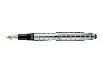 Артикул - 38237 Перьевая ручка с поршневым механизмом заправки; перо из 18-каратного золота, корпус и колпачок с платиновым напылением и структурой в виде больших квадратов, вставка с платиновым напылением, клип и кольца с платиновым напылением Тип пера- M None