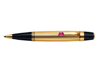 Артикул - 5814 Шариковая ручка с поворотным механизмом. Корпус из позолоченной латуни с отделкой в виде полос и инкрустированной белой звездой,клип с рубином None