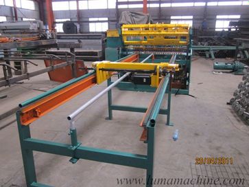 Станок работает от электродвигателя , регурирует сварное давление легко и удобно, имеет загрузочный желоб, который передается от шагового электродвигателя, свободно регурирует размер ячейки в области, продольная проволока подавается и сетка вытягивается при помощи шагового электродвигателя. Продольно и поперечно подаваемая проволока предварительно выпрямляется и нарезается.