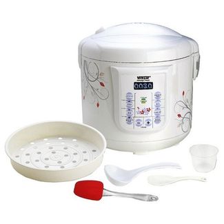 Vitesse VS-519 эта мультиварка способна заменить сразу несколько кухонных приборов и значительно облегчить труд любой хозяйке, особенно если Вы целый день на работе. Не нужно стоять у плиты для того, чтобы помешивать блюдо, следить за тем, чтобы оно не пригорело или не выкипело. Все, что требуется заложить в чашу ингредиенты и выбрать соответствующую программу, а мультиварка самостоятельно со всем справится. Антипригарное покрытие не дает продуктам приставать к стенкам чаши, благодаря чему мультиварка легко моется. Технические характеристики: Мощность: 700 Вт. Максимальный объем чаши: 5 л. Материал корпуса: пластик. Система автоматического отключения в случае перегрева. Управление: электронное. Программы приготовления: рис, гречка, каша на воде, плов, кекс, пароварка, тушение. Функция отложенного старта до 24 часов. Устройство вывода пара. Ручка для перемещения. Чаша с антипригарным покрытием. Простота в использовании и чистке. Комплектация: Контейнер-пароварка. Ложка. Половник. Мерный стакан. Буклет с инструкцией и рецептами.