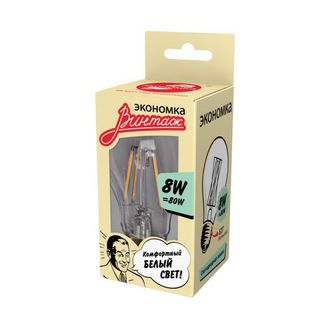 - Светодиодная лампа ЭКОНОМКА LedFL8wA60E2730 Филамент 8Вт А60 160-260V Е27 850лм 2700K по выгодной цене 154 р. руб.;
