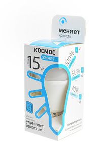 - Светодиодная лампа КОСМОС SMART LksmLEDSD15wA60E2745 15Вт E27 4500K, 3 уровня яркости - 100% 50% 10% по выгодной цене 142 р. руб.;