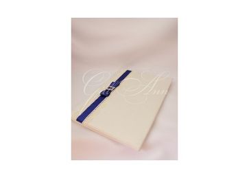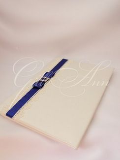 Папка для свидетельства Gilliann Magic PSV011 Папка для свидетельства - часть комплекта. Выполнена из атласа кремового цвета. Украшена кружевом, синей атласной лентой с небольшим бантом и брошью прямоугольной формы, усыпанной стразами. Внутри файл для вложения свидетельства. Материалы и декор: атлас, атласные ленты, кружево, стразы. None