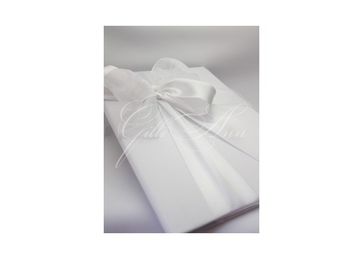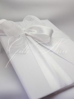 Папка для свидетельства Gilliann Snow-White PSV009 Папка для свидетельства выполнена в белом атласе, украшена пышным бантом, комбинированным с прозрачной белоснежной тафтой. Очень торжественная, элегантная. Внутри файл для вложения свидетельства. Материалы и декор: атлас, атласные ленты, тафта. None