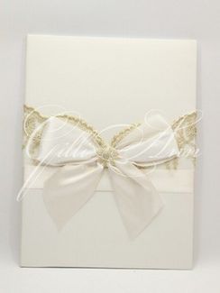 Папка для свидетельства о браке Gilliann Royal Luxury PSV064 Элегантная папка для хранения свидетельства о браке, выполненная в роскошном королевском стиле. Обложка обтянута атласом цвета айвори, декорирована атласной лентой, бантом и золотисто-кремовым кружевом. Приятные спокойные тона, утонченность кружевных узоров и сдержанный дизайн создают великолепную композицию премиум-класса, которая идеально впишется в возвышенную и трогательную свадебную церемонию. Папка объединяет в себе строгий дизайн и хрупкую нежность, вторя торжественно-официальной и одновременной очень романтичной церемонии. Свидетельство о заключении брака - самый главный документ семьи, достойный красивой и изысканной обложки. Материалы и декор: атлас, картон, атласные ленты, кружево. Цвет: айвори (возможно бесплатное изменение на другой цвет). None