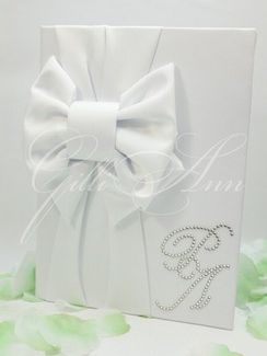 Папка для свидетельства о браке Snow White Classic Gilliann PSV050 Папка для свидетельства Snow White Classic - олицетворение строгой классики и верности свадебным традициям. Сделана из белоснежного гладкого атласа, украшена атласными лентами, пышным бантом. Царство белого цвета нарушает сверкание страз в правом нижнем углу, которыми написаны инициалы Р и Л. Материалы и декор: атлас, атласные ленты, стразы. None