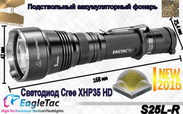 Светодиодный, аккумуляторный фонарь EagleTac S25L-R XHP35 HD E4 новинка 2016 года — является дальнейшим развитием модели подствольного фонаря ЕагТак S200.