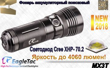 Светодиодный, аккумуляторный фонарь EagleTac MX3T на диоде XHP70.2 — Новинка 2018 года, достойное продолжение легендарного поискового фонаря MX25L3 на MT-G2!