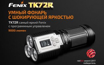 Поисково-спасательный фонарь Fenix TK72R с максимальной яркостью до 9000 люмен, получил награду на выставке Red Dot Award 2017 за дизайн!