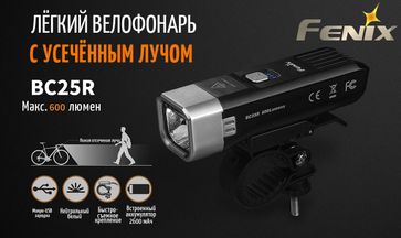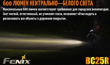Новинка 2018 года — Фонарик для велосипедной езды, по городу и скверам, Fenix BC25R, с нейтральным белым светом, яркостью 600 люмен.