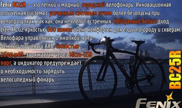 - Fenix Велосипедный фонарик Fenix BC25R, на светодиоде XP-G3 NW по выгодной цене 4 000 р. руб.;