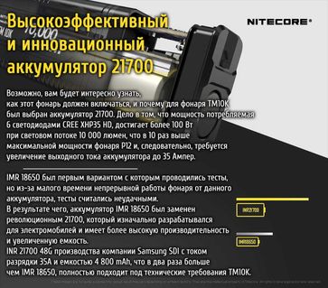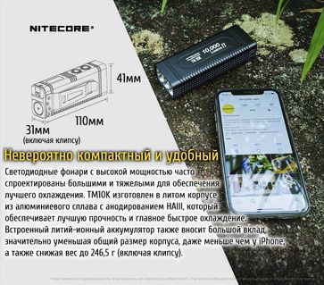 - NiteCore Аккумуляторный фонарь с зарядкой — NiteCore TM10K по выгодной цене 20 000 р. руб.;
