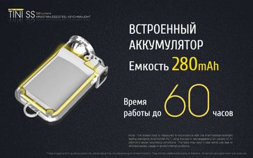 Измерения произведены с использованием штатного аккумулятора NiteCore Tini в помещении с температурой менее 25° по Цельсию, в безветренных лабораторных условиях. Данные могут изменяться в зависимости от условия окружающей температуры среды. None