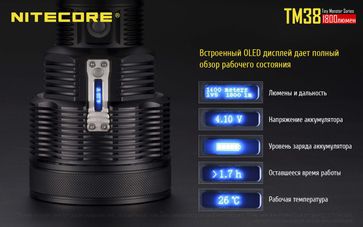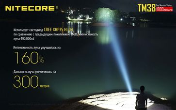 Сверхдальнобойный фонарь NiteCore TM38 является дальнейшим развитием поискового фонаря TM36 фирмы Найткор.