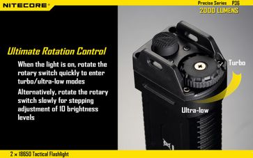 Дизайн и функционал фонаря Nitecore P36 очень удобен и продуман. Батарейный отсек с параллельным расположением элементов питания, удобное управление и переключение режимов кнопкой и поворотной шайбой,индикатор питания, новейший светодиод с яркостью 2000 люмен делают его одним из самых интересных и компактных в своем классе,незаменимым помощником для рыболова, охотника, туриста. None