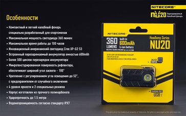 - NiteCore Налобный аккумуляторный фонарик NiteCore NU20 по выгодной цене 1 800 р. руб.;