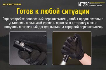 Новинка 2018 года — многофункциональный, светодиодный фонарь NiteCore MT22C c плавной регулировкой яркости, подходит для тактического применения.