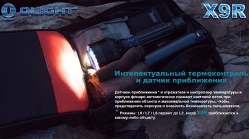 Olight X9R — Новинка 2018 года, один из самых ожидаемых поисковых фонарей. Его прототипы были замечены на выставках еще 2 года назад, но окончательный релиз сильно отличается от первоначальных концептов.